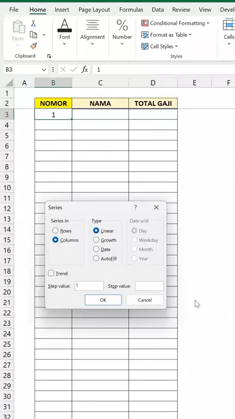 Nomor Urut Otomatis menggunakan menu Fill Series #excel #trick #tips
