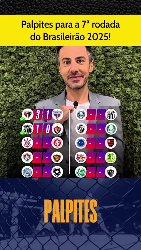 Palpites para a 7ª rodada do Brasileirão 2025: Cruzeiro x Flamengo, Corinthians X Internacional, Gremio x Santos, Vasco x Palmeiras! #cruzeiroxflamengo #corinthiansxinternacional #brasileirão2025 #esporteviral #ultimasnoticias