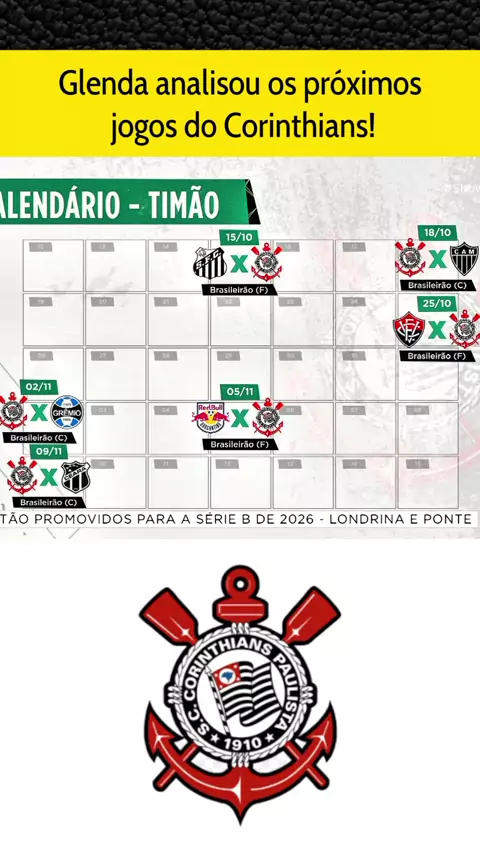 Glenda analisou os próximos jogos do Corinthians pela a rodada do Brasileirão! #santosxcorinthians #Corinthians #brasileirão2025 #esporteviral #cor