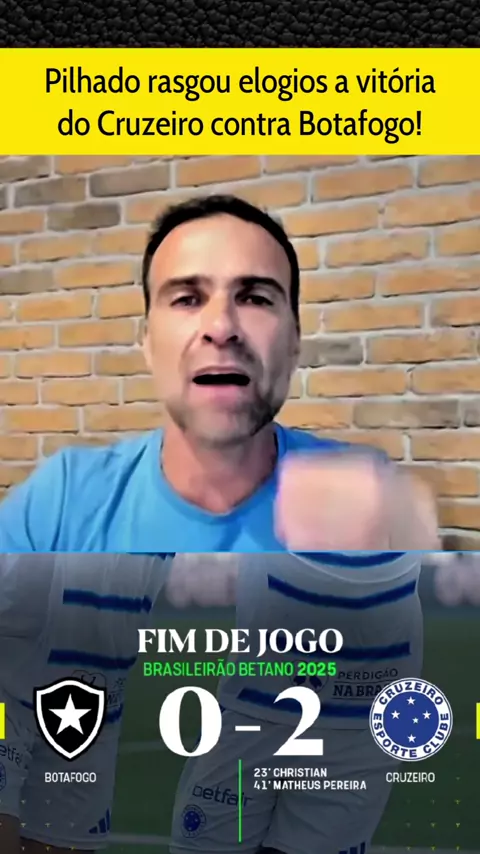 Pilhado rasga elogios a vitória do Cruzeiro contra Botafogo e volta a liderança do Brasileirão!! #botafogoxcruzeiro #Cruzeiro #Botafogo #brasileirão2025 #esporteviral