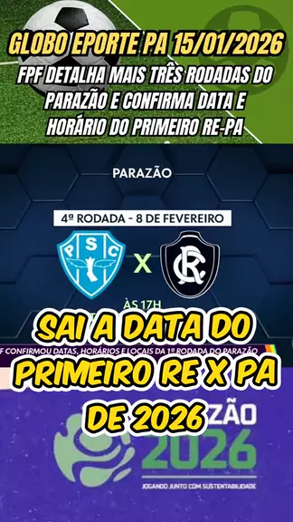 Globo Esporte PA 15/01/2026 FPF detalha mais três rodadas do Parazão e confirma data e horário do primeiro Re-Pa #parazão #campeonatoparaense #ClubedoRemo #Paysandu #esporteviral