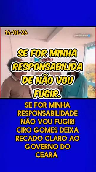 #CiroGomes #recado #governo #responsabilidade #noticias. Se for minha responsabilidade nรฃo vou fugir! 14/01/2026
