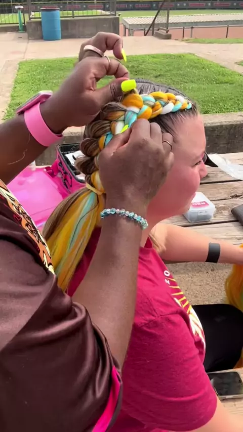 Do your thang Gabby: Homerun Braidstyle#dutchbraids#braids#braid#homerun#teamcolors#gamedayhairstyle#gabby101#doyourthing#smallbraids#softballhairstyles#softballhair#softballbraids##drake