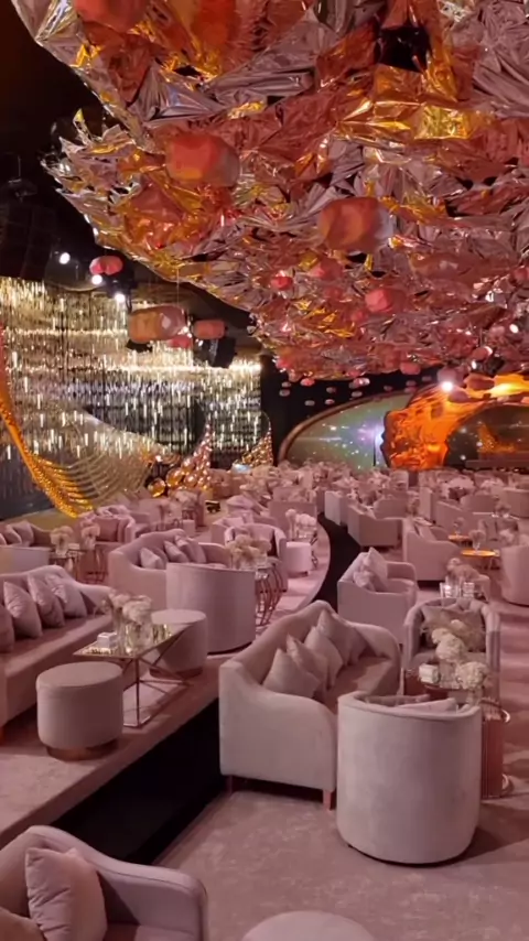 witnessed a wedding project in 2022. Gold shells to create the tornados & wavy steel structure furnished with more than 100 thousand of “Swarovski almonds” all over the side walls with LED screens in the background 🔥 #wedding2023 #bride2023 #wedding