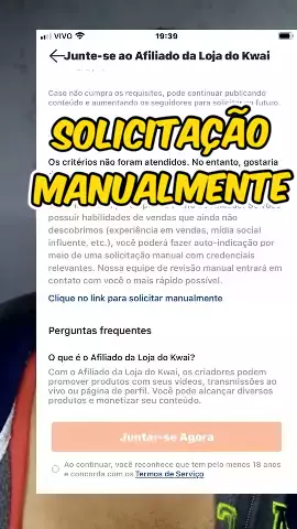 Tem como solicitar manualmente para ser afiliado do loja do KWAI #gêmeos #rendaextra #viral #lojakwai