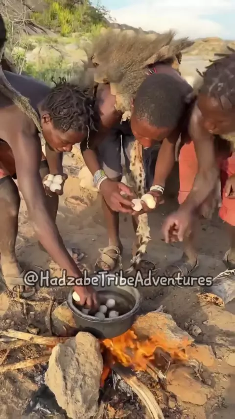 Tribo Hadzabe finalmente encontrar um tipo diferente de comida para experimentar, e celebrar o bom dia # hadzabetribe # hadzabe # africantribes # bushlife