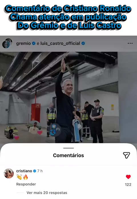 Comentário de Cristiano Ronaldo chama atenção em publicação do Grêmio e de Luís Castro#gremio #futebol #cristianoronaldo #luiscastro #noticia