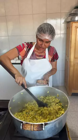 cardápio do dia, arroz com carne suína e farofa de abóbora com banana verde #cardapio #Escola #merenda