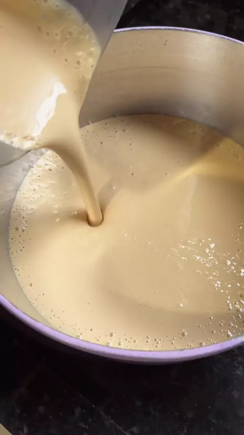 “Transformei nosso leite condensado caseiro em um doce de leite maravilhoso! Simples, prático e com aquele sabor caseiro que faz toda a diferença. Um docinho perfeito para comer puro, com frutas ou para rechear sobremesas! #DoceDeLeite #LeiteCondensadoCaseiro #ReceitaFáci #FeitoEmCasa #ReceitasPráticas