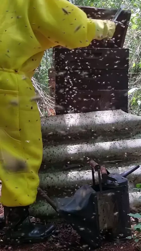 Sai e volta para a colmeia #apicultura #mel #colheitademel #apicultor #abelhas