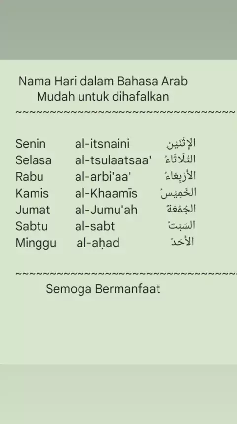 nama hari dalam bahasa arab#learnarabic##viral#kosakata