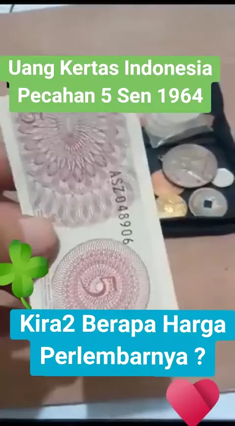 Uang kertas pecahan 5 sen 1964#uangkuno#5sen#kolektoruangkuno#serisukarelawan#uangkaget#videoviral#uangkertaskuno
