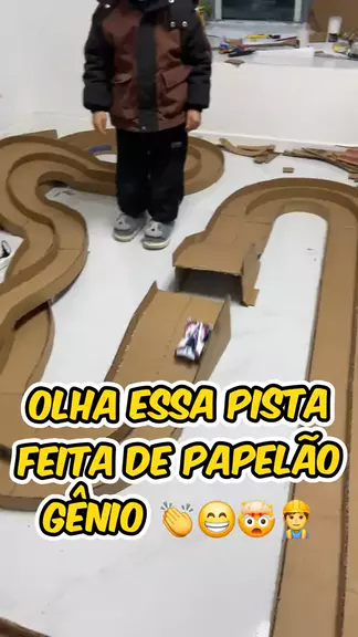 Essa pista de papelão ficou irado, melhor que várias que vende por aí 😁🤯👷♂️ #engenhoca #invenção #carrinho #viraliza #gambiarra