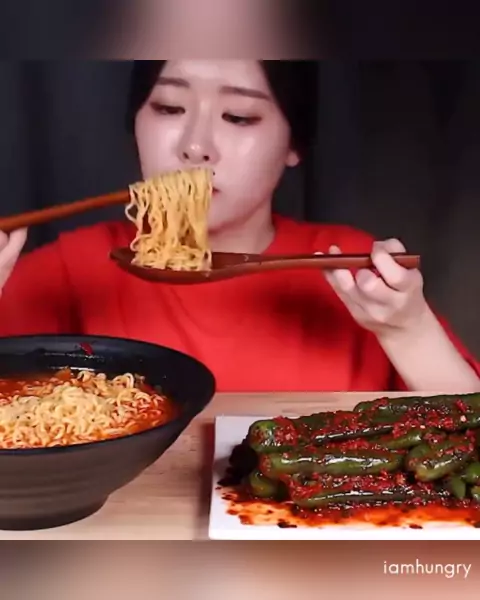 Sheโs eating ramen and spicy chili kimchi ๐ #ekspresimakan #mukbang #asmr #eat #food