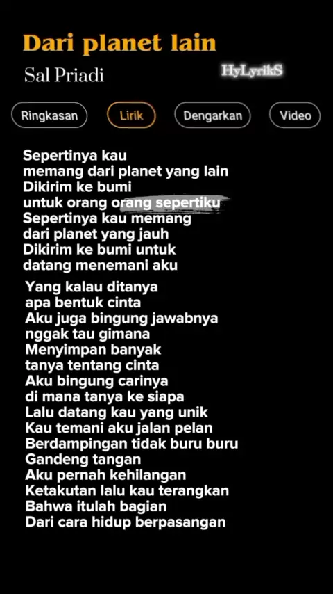 Lirik Lagu Dari Planet Lain-Sal Priadi Part 324 ๐ถ #lyrics #liriklagu #lirikaesthetic #lagutrending #lagu #musik #musically #hylyriks #salpriadi #dariplanetlain