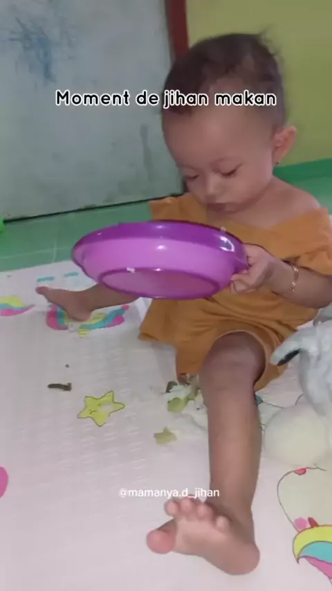 Perkembangan anak itu berbeda beda, yang penting kalu mau samaan piring makannya ada di keranjang kuning#anaknikitawilly#peralatanmakan#peralatanmpasi#piringmakananak#piringsilikon#ojodibandingke