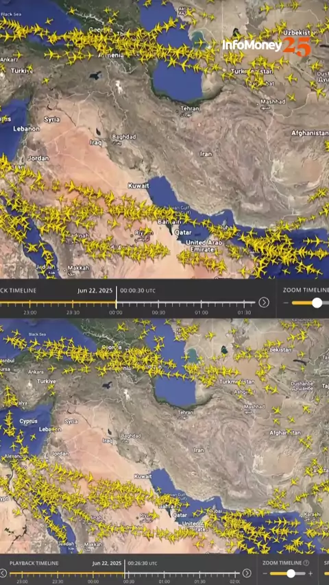 No Irã, com os bombardeios dos Estados Unidos, o espaço aéreo iraniano, do Iraque, da Síria e de Israel ficou vazio, segundo o site de rastreamento de voos FlightRadar24. As companhias aéreas comerciais suspenderam alguns voos no Oriente Médio após os ataques dos EUA ao Irã. A rota do Oriente Médio tornou-se mais importante para voos entre Europa e Ásia desde que o espaço aéreo russo e ucraniano foi fechado devido ao conflito entre os dois países. #Israel #Irã #Eua #Avião #internacional