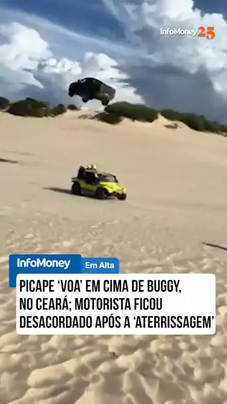 Uma picape acelerou e pulo sobre um buggy nas dunas da praia de Canoa Quebrada, na cidade de Aracati (CE), no sábado (17). O vídeo mostra o momento em que a picape acelera e salta acima do outro veículo. O motorista da caminhonete ficou desacordado devido o impacto com o solo e os airbags foram acionados, segundo testemunhas ao portal G1. A prefeita da cidade, Roberta de Bismarck, disse que as polícias locais investigam. #Ceará #Aracati #Picape #Duna #buggy