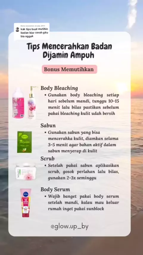 Membalas @zhang_yeee Tips nya yah, di aku ngaruh kok asal konsisten , body bleachig nya pilih salah satu ya 🥰 #tipsforgirls #tipsandtricks #tipsglowup #tipsmemcerahkankulit #tipsmemutihkankulit