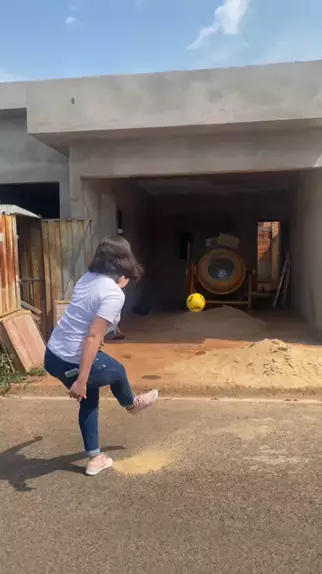 Será que você consegue chutar a bola na boca da betoneira.