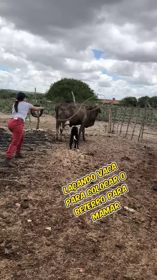 Laçando vaca, para colocar o bezerro para mamar