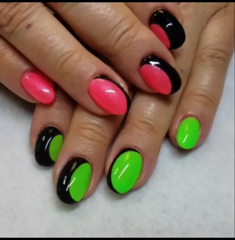 Simple Neon Abstract nail design.. What would you call it? #greenandpink #neonnails #simplenails #abstractnails #futuristic #brightnails #acrylicnail More