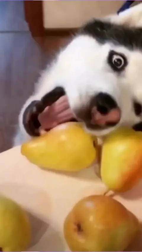 Anak anjing husky lapar