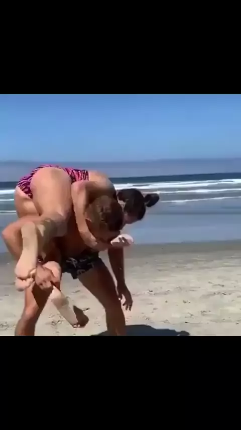 A brincadeira é dar o máximo de voltas em 1 min sem cair #KwaiBonusdaPáscoa #jiufeminino #jiujitsu #praia