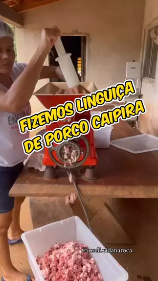 Linguiça de porco caipira caseira Ingredientes 6 kg de carne de porco 1kg e meio de toicinho 6 dentes de alho Cebola de cabeça Cebolinha verde Pimenta a gosto Sal a gosto Tripa de porco limpa Pode ser comprada ou utiliza a própria tripa do porco fica critério de cada um !
