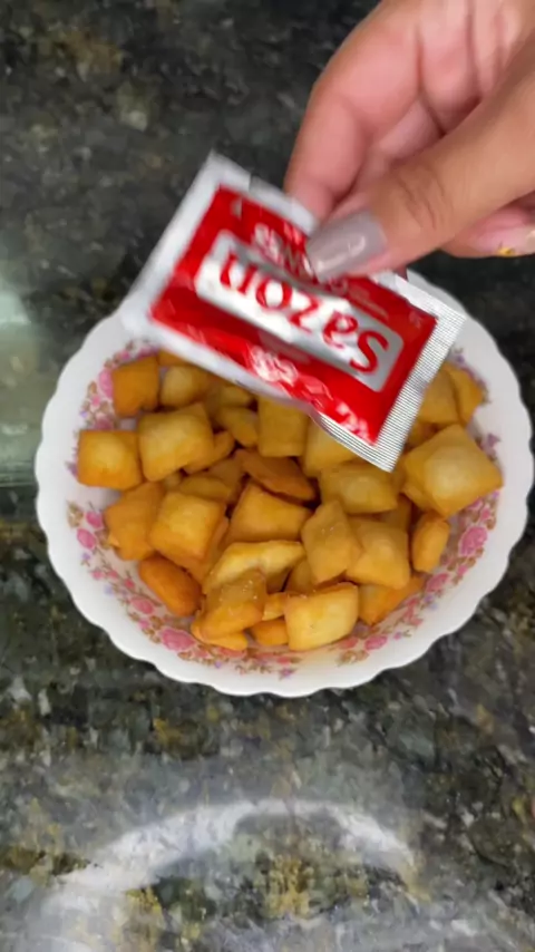 Salgadinho Crocante 1 xícara de farinha de trigo 1 colher de margarina 5 colheres de água ir colocando aos poucos pois varia muito 1 pitada de sal Tempero pronto para temperar