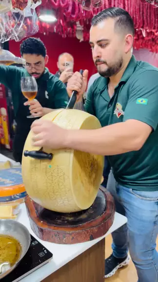 Abrindo um Grana Padano italiano… aquele momento que arrepia qualquer amante de queijo! 🇮🇹🧀 Textura, aroma e tradição em cada golpe. #food #queijo