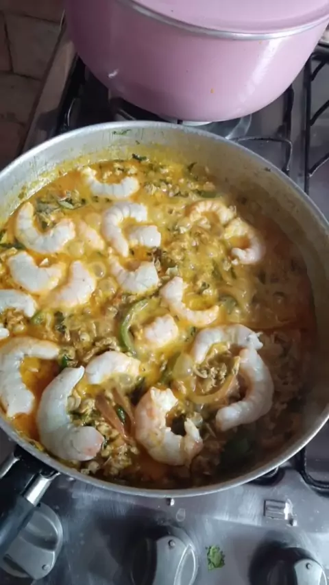 #Kwai preparando uma moqueca de sarnabim, conhecido em Salvador como chumbinho e camarão. #