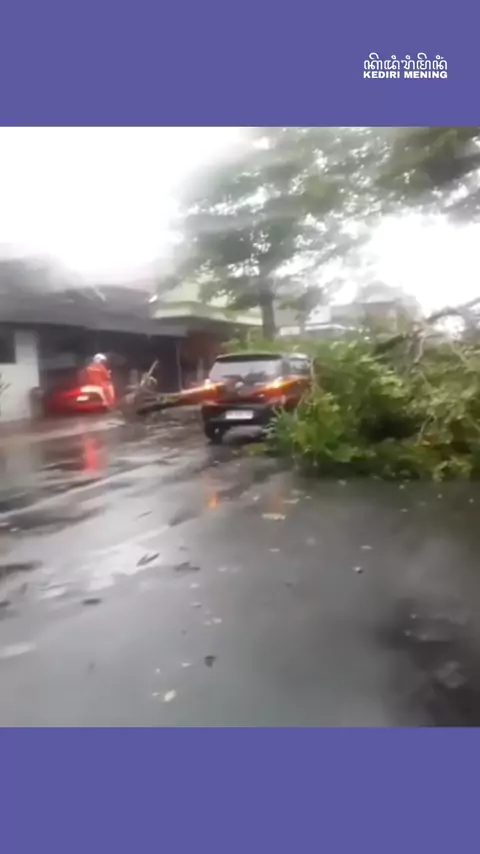 Pohon tumban9 men!mpa mobil yang sedang melintas di Jalan Bali, Kota Blitar, pada Sabtu (7/2/2026). Sumber: 🎥 DM for credit#hujanangin#kotablitar#kediriraya#kedirimening