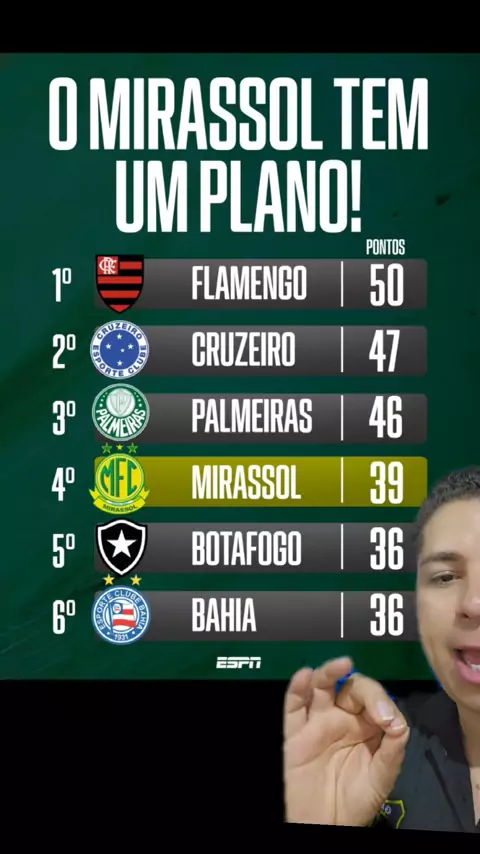 CLASSIFICAÇÃO ATUALIZADA DO G6 DO BRASILEIRÃO #Brasileirão #Botafogo #Mirassol #esporte #esporteviral