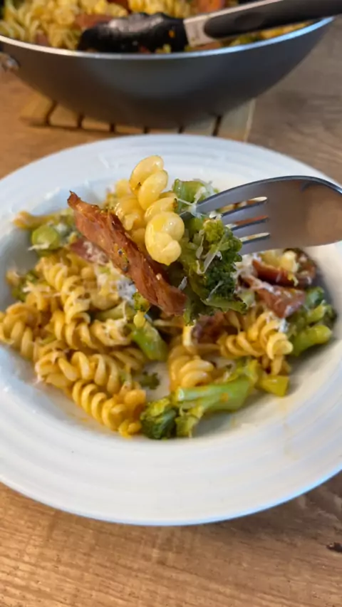 Macarrão com calabresa e brócolis! #macarrão #Comida #Receita
