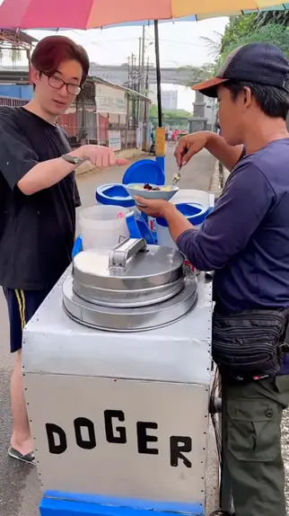 Jajan Es Doger, enaaak bgt, aku betah tinggal di Indonesia #omkimdandea #kimdea #koreanindonesiancouple
