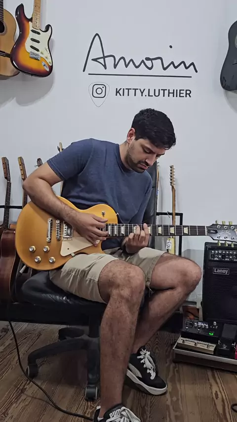 Rodrigo y su Gibson Les Paul Tribute lista. SET: Ernie Ball 010 (E) #gibson #lespaul #luthier #viral #guitar More