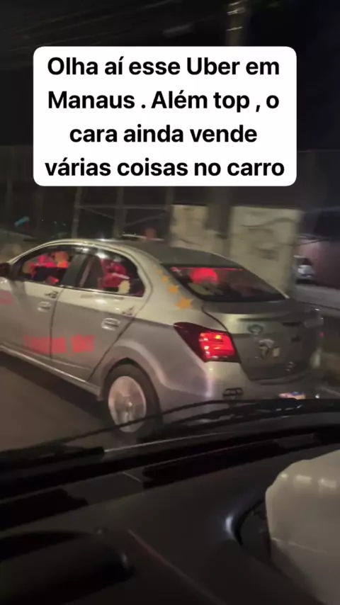 Uber top, e o motora ainda vende um pouco de tudo no carro.