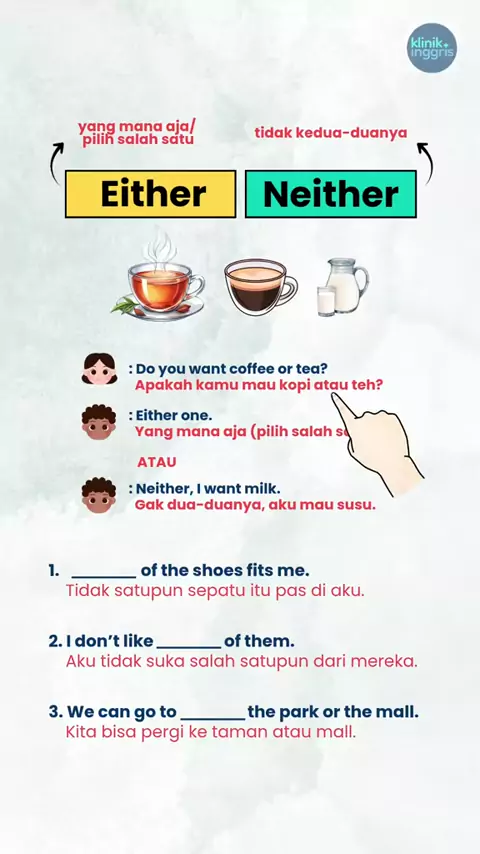 Either atau neither? Mana yang tepat #bahasainggris #kosakata #grammar #kursusbahasainggris #kampunginggris