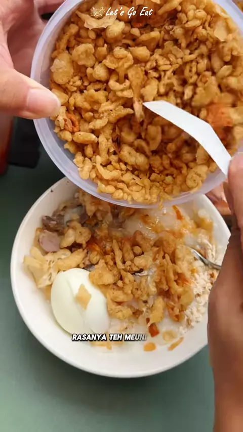 Bubur Ayam pake perulukan bawang udah biasa !! Yg ini pake perulukan kremesan ! #letsgoetall #letsgoeat #kulinerbandung #sarapan #bubur