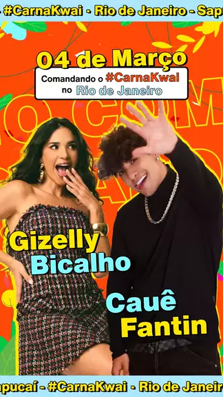 Olha esse casalzão de peso chegando Riooo! 🌟 @gizelly.bicalho e @Cauefantin vão comandar o #CarnaKwai direto do coração da folia carioca! 🎭✨ ✋ Anota aí: dia 04 de Março! Aqui no app, você vive o Carnaval de um jeito único: shows ao vivo, conteúdos exclusivos e muuuita diversão! 🥳 Baixe agora e venha curtir com a gente, porque Carnaval é #BomPraKwai! 🧡💃 #CarnaKwaiComigo #RiodeJaneiro