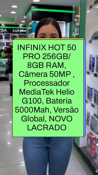 INFINIX HOT 50 PRO 256GB/ 8GB RAM, Câmera 50MP , Processador MediaTek Helio G100, Bateria 5000Mah, Versão Global, NOVO LACRADO