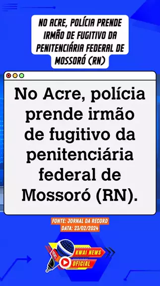 No Acre, polícia prende irmão de fugitivo da penitenciária federal de Mossoró (RN). Fonte: Jornal da Record Data: 23/02/2024 #Notícia #ultimasnoticias #noticias #fugitivos #Mossoró