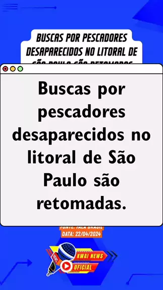 Buscas por pescadores desaparecidos no litoral de São Paulo são retomadas. Fonte: Fala Brasil Data: 22/04/2024 #Notícia #ultimasnoticias #noticias #pescadores #Desaparecidos