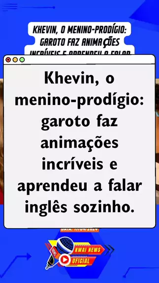 Khevin, o menino-prodígio: garoto faz animações incríveis e aprendeu a falar inglês sozinho. Fonte: Fala Brasil Data: 17/04/2024 #Notícia #ultimasnoticias #noticias #menino #prodigio