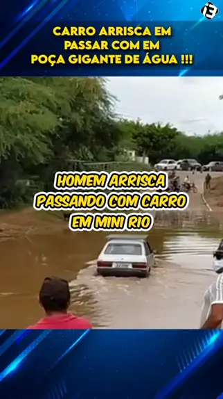 Video na internet viralizou após homem criar coragem e tentar atravessar com carro em poça de água gigante, quase ficou parado mais no final ele conseguiu passar. Você tentaria? foi sorte? #noticias #crime #alerta #kwai #viral
