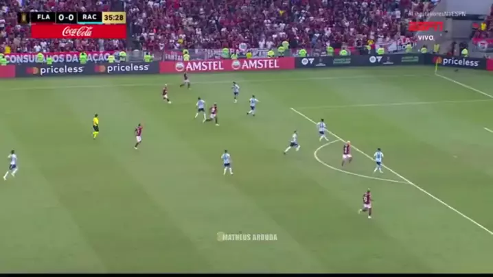 Primeiro gol do lateral direito do Flamengo, Wesley abriu o placar... #Libertadores #Rodada5 #FlamengoxRacing #Esporte #Messi