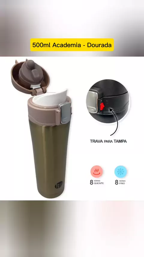 Garrafa Isotérmica 8 horas Quente ou Gelada com Tampa 500ml Academia - Dourada #Garrafa #Isotérmica #Lojinhadebru20 #Kwaishop