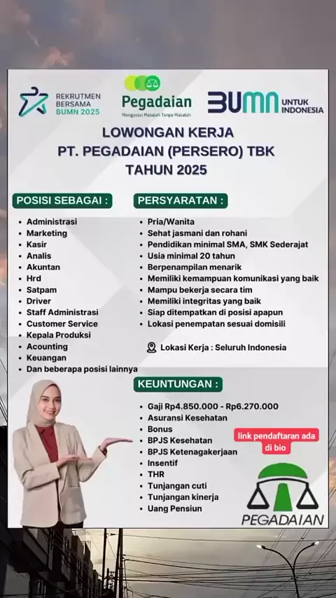 YUK DAFTAR SEKARANG LINK PENDAFTARANNYA YANG KAMI SEMATKAN YA KAK #lowongankerja #Pegadaian #fypviral #bumnuntukindonesia #fyppppppppppppppppppppppp