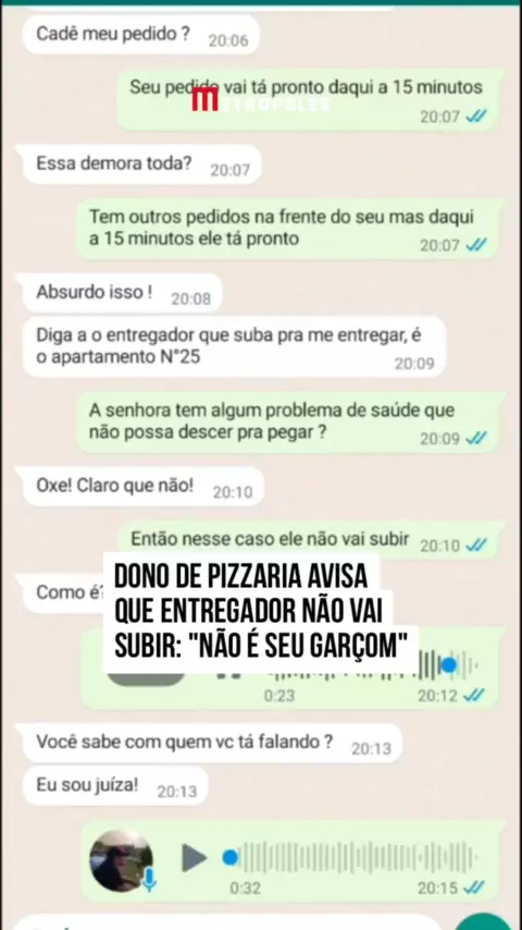 #Repost @metropoles 🍕🏍️ O entregador deve subir ou não? A discussão é antiga e ganhou mais um capítulo nesta semana. A conversa entre o dono de uma pizzaria e uma #cliente viralizou após ele avisar que ela teria que descer para buscar a comida. O diálogo começa com a mulher reclamando da demora para o #pedido chegar. Após ser informada que levaria cerca de 15 minutos, ela reclama e pede: “Absurdo isso! Diga ao entregador que suba, é o apartamento número 25”.